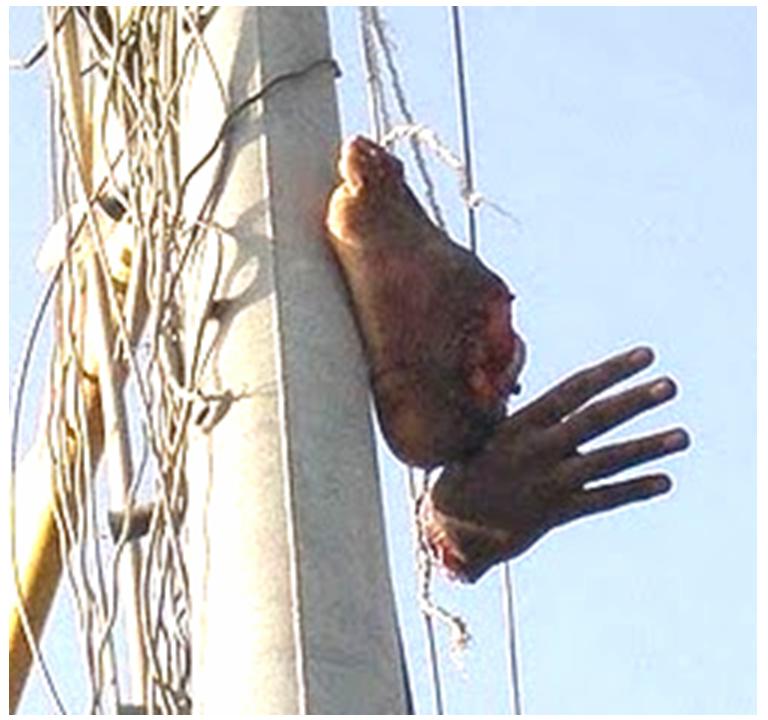 Note: Notice traumatized look on the face of the youth, middle picture of the next to last row ... perhaps asking himself: "What is this savagery that others seem to be enjoying so much".