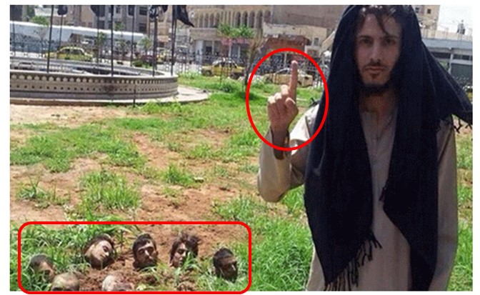 Sub-part D:   Examples of the ... "ummah" ("muslim" gang hand sign). Links "islam" atrocities with ... the "islam" directives in the "koran" and "hadith". The muslim gang sign is also a statement of the "islam" apostasy regarding the nature of God. Many pictures of decapitations (head being cut off) ... that are accompanied by the "muslim" gang hand sign.