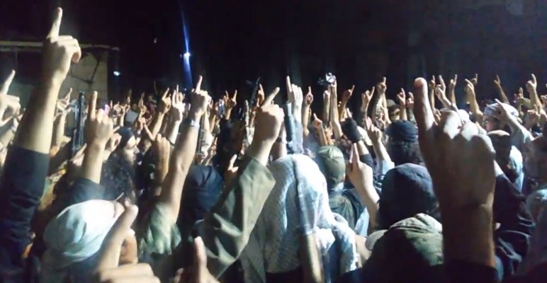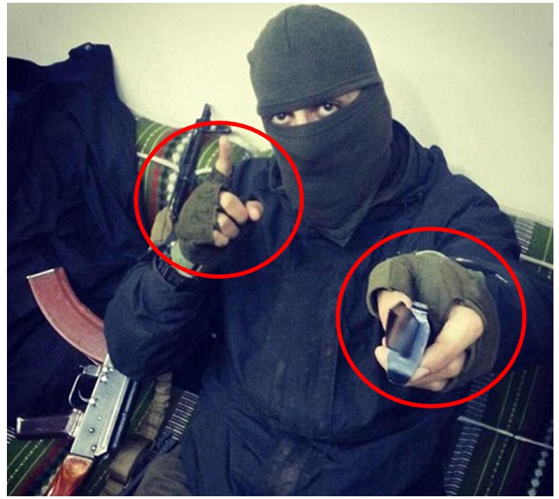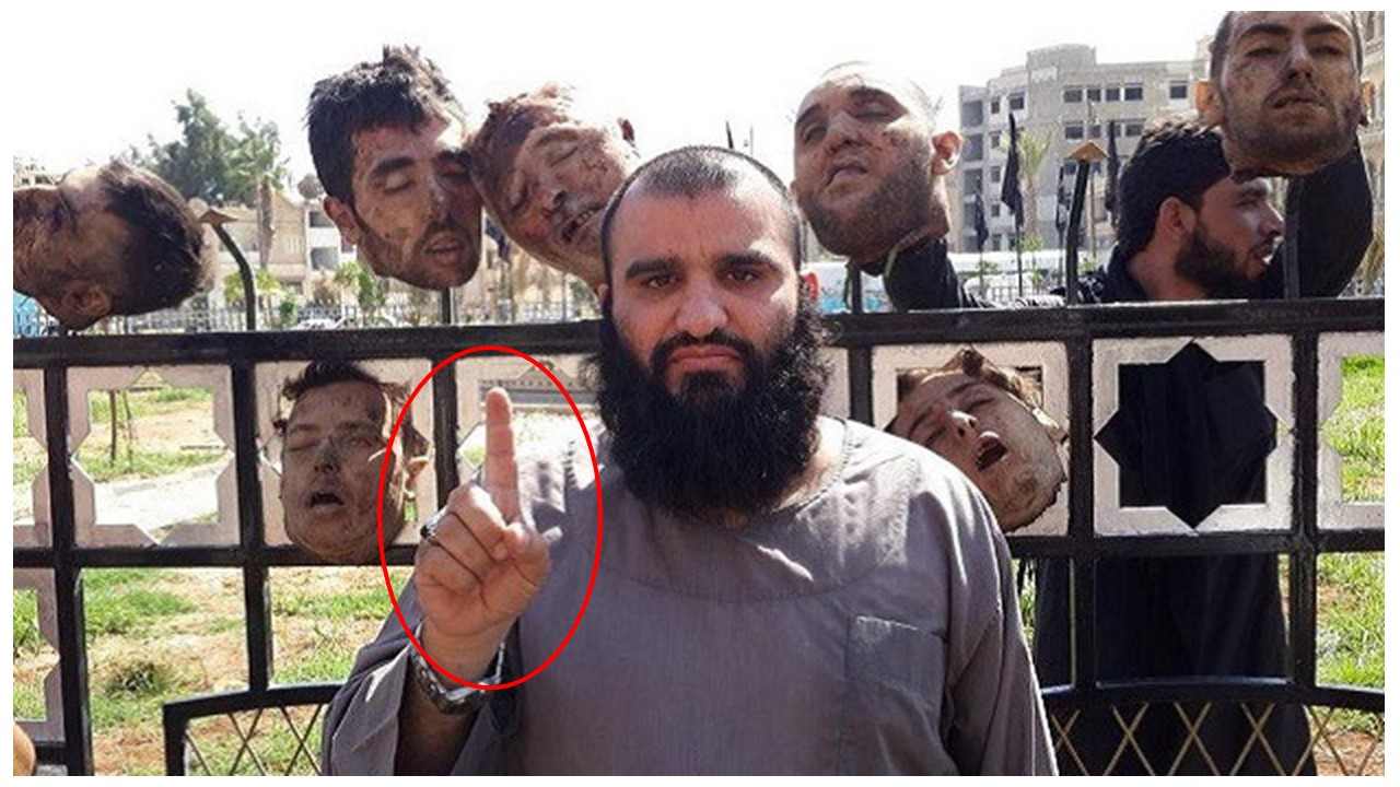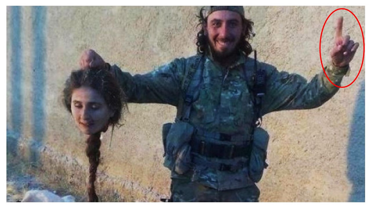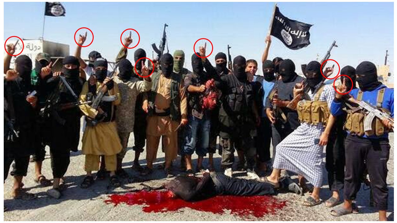 Note 1: You can tell ... from the "muslim" gang sign (raised index finger) ...