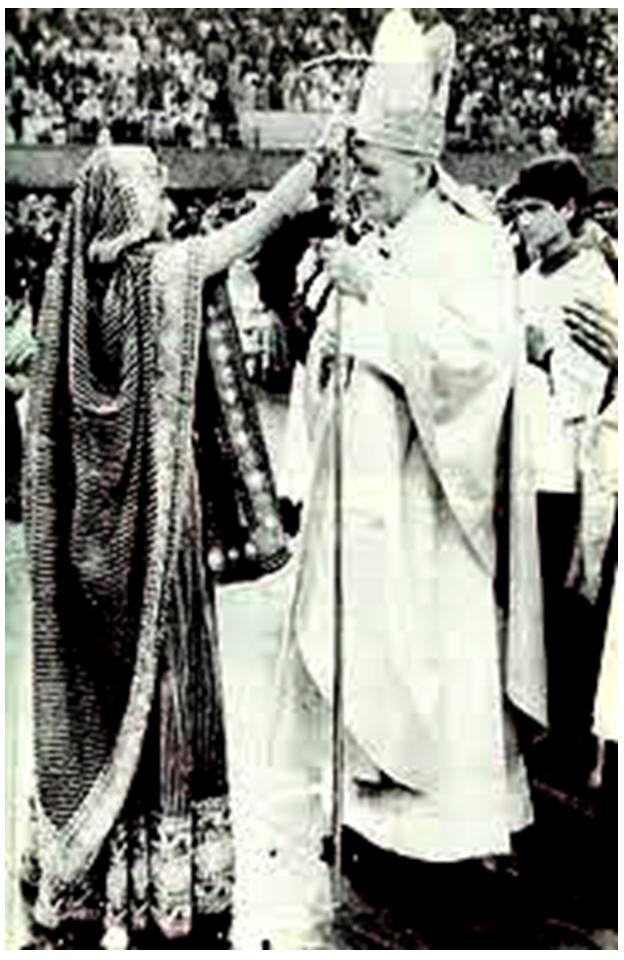 Wojtyla wearing the headdress of a pagan cult ... confirming more un-baptized pagans