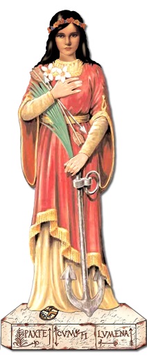 2. The anchor ... refers to the fact that emperor Diocletian wanted to drown her in the Tiber River by having an anchor tied around her neck. After Philomena was cast into the river ... two Angels detached the anchor and lifted her out of the river. Upon seeing this vast numbers that were watching on the river bank converted to the Catholic Faith.